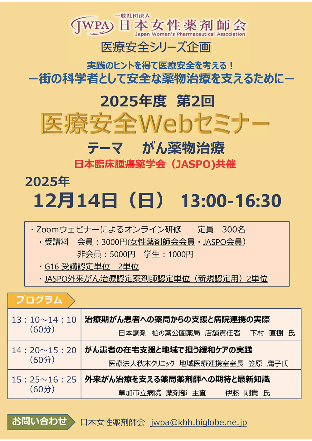 「2025年度 第2回医療安全WEBセミナー」ダウンロード>>